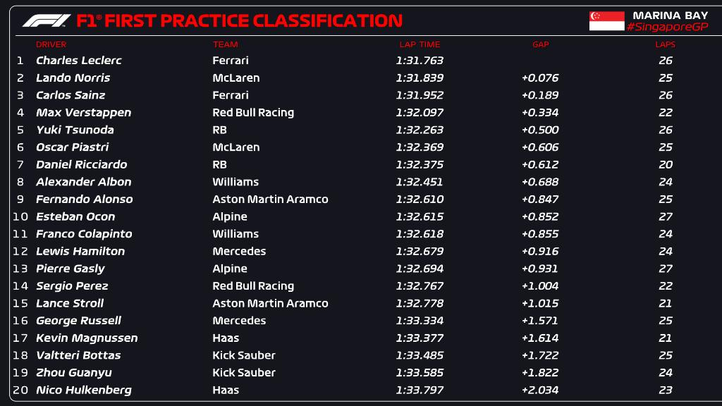 Fórmula-1: Confira os tempos dos treinos livres para o GP de Singapura