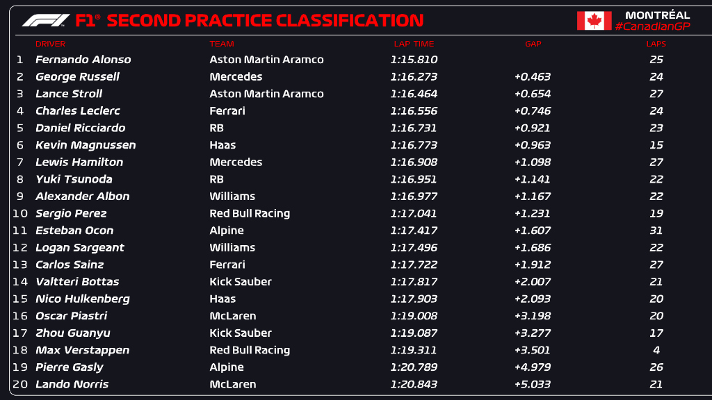 Fórmula-1: Confira os tempos dos treinos livres para o GP do Canadá