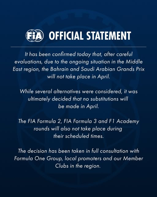 Fórmula-1: FIA confirma o cancelamento dos GPs do Bahrain e Arábia Saudita