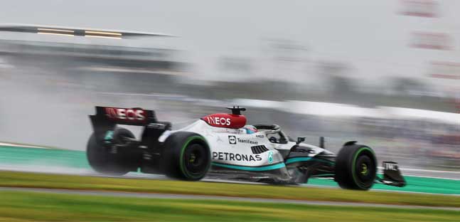 Com chuva o britânico George Russell (Mercedes) foi o mais rápido nos treinos livres desta sexta-feira para o GP do Japão, no Circuito de Suzuka, 18ª etapa da temporada. No segundo treino Russell marcou o tempo de 1m42s248.