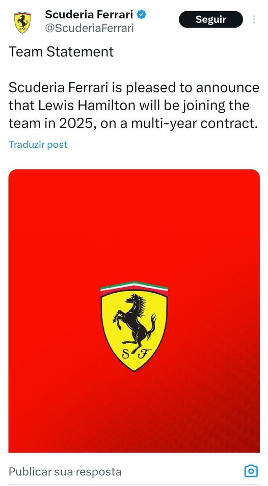 Hamilton se juntará a Charles Leclerc na Ferrari em 2025, substituindo Carlos Sainz. Escrevendo no X, o piloto espanhol confirmou que deixará a equipe no final de 2024 e fará um anúncio sobre seu futuro “no devido tempo”.