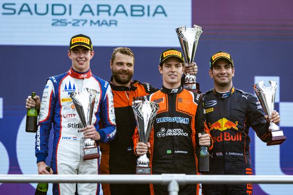 O neozelandês Liam Lawson (Carlin) e o brasileiro Felipe Drugovich (MP Motorsport) foram os vencedores da segunda etapa da temporada, disputada no Circuito Jeddah Corniche, na Arábia Saudita.