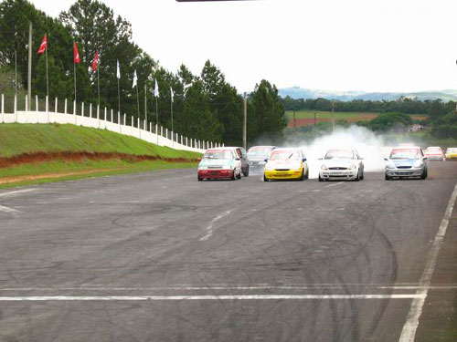 A 5a etapa do Campeonato Gaúcho de Marcas & Pilotos já iniciou pegando fogo. A disputa da tomada de tempos realizada na manhã deste domingo adotou o modelo da superpole, onde os 10 mais rápidos da primeira parte do treino tem 10 minutos para disputar a pole position. A movimentação se iniciou no inicio da tomada, quando VW Gol 57 (Van Express) do piloto Vanderlei Pires teve a quebra da homocinética na saÁda da curva 1, resultando numa forte batida na proteção de pneus, ocasionando a primeira bandeira vermelha da tomada. A segunda bandeira vermelha foi ocasionada pela forte batida do Uno 33 (Ereno DÁ¶rr) conduzido por Robson Werner no muro da curva 2; e finalmente a terceira pela rodada do GM Celta 46 (Latina) de João Sant’Anna na curva 1. Com toda a movimentação, a pole position acabou ficando com a dupla Felipe Kaki Andrade/Rafael Mocelin (Fiat Uno 14) que viraram no tempo de 1:20.207 Á média de 135 km/h. O segundo posto ficou a dupla João Cardoso Jr/Pierre Ventura (GM Corsa 10 – Markas/Autoracing/Scuderia 525/Curi) com o tempo de 1:20.469, os únicos a virarem abaixo de 1:21s. A pole position da classe B ficou com Luiz Carlos Ribeiro (Fiat Uno 44 – Da Terra/Ereno DÁ¶rr) com o tempo de 1:21.301, 4o posto na classificação geral.
