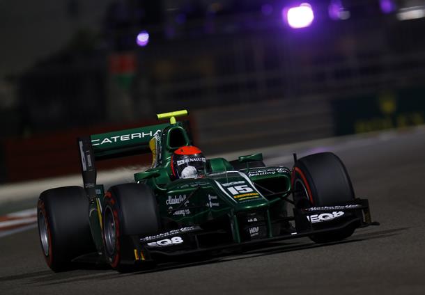 O norte-americano Alexander Rossi (EQ8 Caterham Racing) larga na pole-position para a prova principal da última etapa do ano, em Abu Dhabi, nos Emirados Árabes Unidos. Rossi foi com a pole, após o sueco Marcus Ericsson (DAMS), que marcou o melhor tempo, ter a ultima volta anulada por exceder os limites da pista.