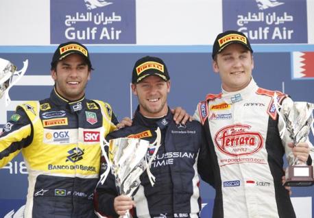 O britânico Sam Bird (Russian Time) venceu neste domingo (21/04) , no Circuito de Sakhir, no Bahrein, a prova curta da segunda etapa da temporada. O brasileiro Felipe Nasr (Carlin) e o monegasco Stefano Coletti (Rapax), completaram o pódio.