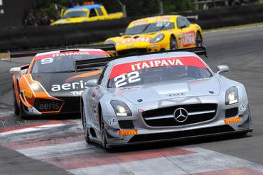 O belo Mercedes-Benz SLS AMG chegou neste fim de semana ao Itaipava GT Brasil, mas já conquistou duas vitórias na categoria GT3, pelas mãos de Paulo Bonifácio e Sérgio Jimenez. A mais recente, na prova que fechou a penúltima etapa da temporada, neste domingo (13), no Velopark, em Nova Santa Rita (RS). Os lÁderes Matheus Stumpf e Valdeno Brito abandonaram com problemas de câmbio no Ford GT. Xandy Negrão e Xandinho Negrão, de Lamborghini Gallardo LP600, chegaram em segundo e são os novos lÁderes da GT3.