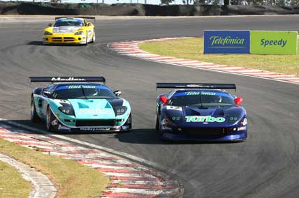 Faltavam apenas nove das 35 voltas previstas para que a oitava etapa do TelefÁ´nica Speedy GT3 Brasil, realizada neste domingo no Autódromo de Interlagos, em São Paulo, terminasse com mais uma vitória do Ford GT V8. O modelo norte-americano largou na pole com Xandy Negrão e liderou a maior parte da corrida.