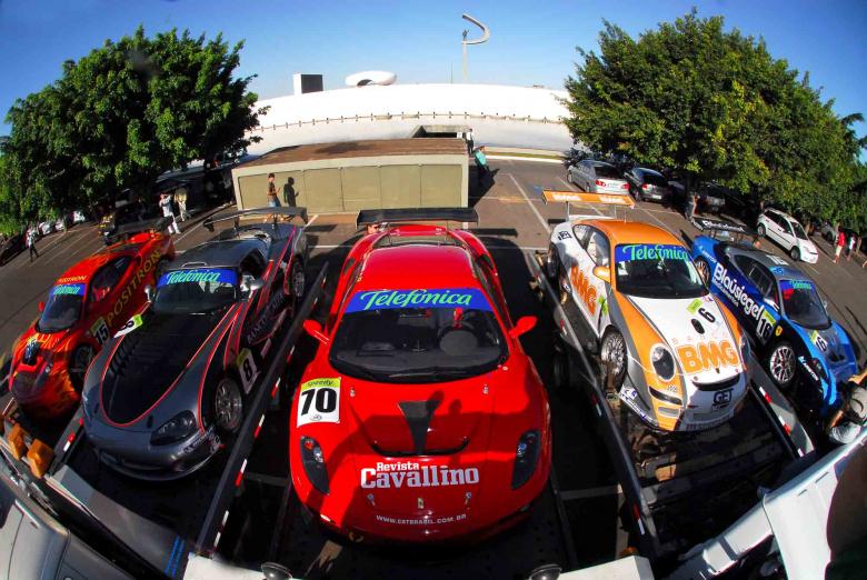 Alguns supercarros do TelefÁ´nica Speedy GT3 Brasil foram apresentados nesta quinta-feira (12) ao público de BrasÁlia. E chamaram a atenção em pontos turÁsticos importantes da Capital Federal. No meio da tarde, caminhões levando três Ferrari F430 V8, um Dodge Viper V10 e o Porsche 997 GT3 Boxer dos irmãos Emerson e Wilsinho Fittipaldi percorreram o eixo monumental e permaneceram por vários minutos estacionados em frente ao Memorial JK e o Congresso Nacional.