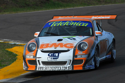 Depois de levar o Porsche 997 GT3 Cup Boxer ao primeiro pódio de sua história no TelefÁ´nica Speedy GT3 Brasil, o piloto paraibano Valdeno Brito Filho conquistou neste sábado, em Santa Cruz do Sul (RS), a primeira pole position da marca alemã na competição. Já com a pista seca após uma manhã de chuvas na região, ele fechou a segunda sessão de classificação do dia com a marca de 1min19s089, e superou o favoritismo teórico do Ford GT V8 de Xandy Negrão – autor das melhores voltas na sexta-feira -, que vai largar em segundo com 1min19s750. Ingo Hoffmann, com Lamborghini Gallardo V10, abre a segunda fila com o tempo de 1min19s801.