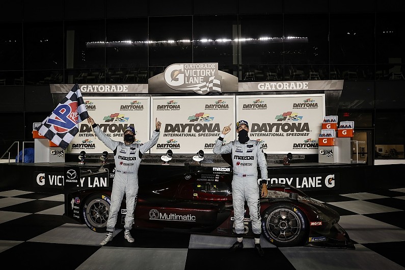Bomarito/Tincknell venceram com 10s168 de vantagem sobre os parceiros de equipe Oliver Jarvis/Tristan Nunes, no Mazda RT24-P #77.