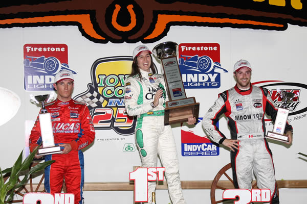 A brasileira Bia Figueiredo, da Sam Schmidt Motorsports, venceu na noite de sábado (20/06), em Iowa, a 7ª prova da temporada. O neozelandês Wade Cunningham e o canadense James Hinchcliffe, parceiros de equipe de Bia, que nos EUA é conhecida como Ana Beatriz, completaram o pódio.