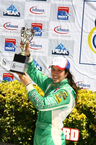 Com o sexto lugar obtido na primeira prova e o terceiro na segunda, a piloto da Sam Schmidt Motorsporsts, que chegou a Sonoma em quinto lugar no campeonato, recuperou a posição perdida na etapa anterior, ao ser jogada na grama da área interna do circuito de Kentucky por um adversário.