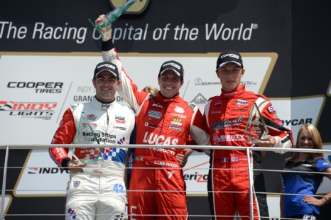 O norte-americano Matthew Brabham (Andretti Autosport) e o brasileiro Luiz Razia (Schmidt) foram os vencedores da rodada dupla disputada no traçado misto do Indianápolis Motor Speedway. Foi a primeira vitória dos dois pilotos, que estrearam neste ano na categoria de acesso da IndyCar.