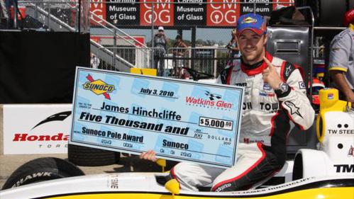O canadense James Hinchcliffe (Team Moore Racing) conquistou neste sábado (03/07), em Watkins Glen, a pole-position para a 6ª etapa da temporada. Foi a 3ª pole de Hinchcliffe no ano. Hinchcliffe fez o tempo de 1m37s3594.
