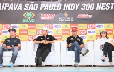 A terceira edição da Itaipava São Paulo Indy 300 Nestlé contará com a presença de quatro brasileiros no grid. Hélio Castroneves, Tony Kanaan, Rubens Barrichello e Bia Figueiredo concederam na tarde desta quinta-feira (26), no Pavilhão de Exposição do Anhembi, uma entrevista coletiva para falar sobre os preparativos para a etapa paulistana, que será realizada dia 29 de abril no Circuito Anhembi, montado na região do Sambódromo, Zona Norte da capital paulista. O evento contou também com a presença do artista plástico Paulo Soláriz, que exibiu o troféu que será entregue ao vencedor.