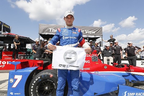O russo Mikhail Aleshin (Schmidt Peterson Motorsports) conquistou nesse sábado (20/08), a pole-position para o GP de Pocono, no Pocono Raceway, 13ª etapa da temporada. Aleshin se tornou o primeiro russo a conquistar uma pole na história da categoria. O russo conquistou a pole com a média de 220,445 mph (duas voltas rápidas, em 40s7901 e 40s8629).