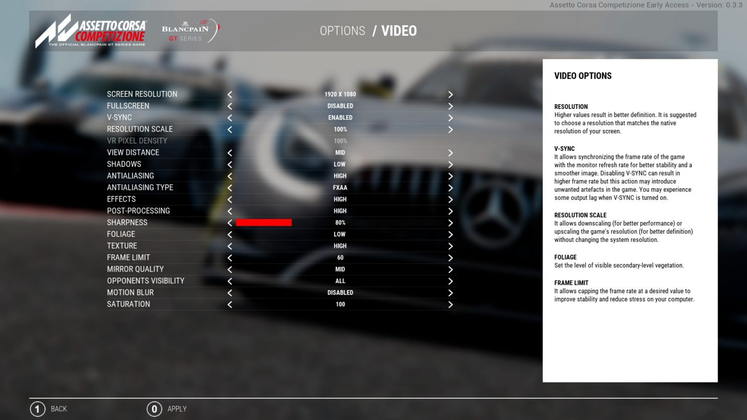 Bom amigos, meu PC é um AMD 8350, GTX 970, 16 Gb DDR3 e Windows 10 (1803) e estava sofrendo para conseguir rodar o Assetto Corsa Competizione a 60 FPS no Multiplayer. Para jogar sério esse tipo de jogo, 60 FPS é mais do que recomendado então se abaixar muito já sente a diferença e com isso fica um pouco mais difÁcil.
