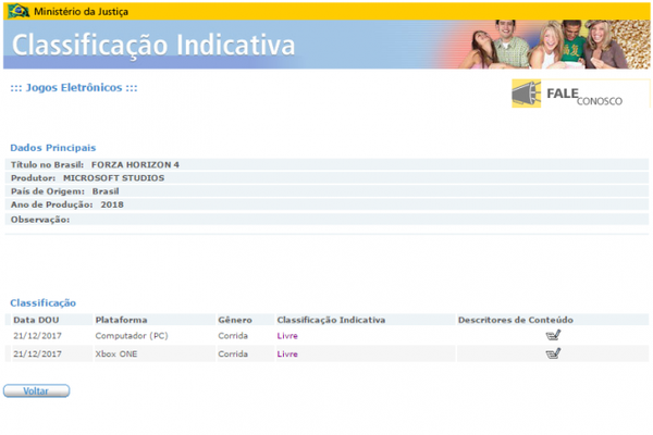 A informação foi disseminada originalmente no fórum Resetera, no qual um dos usuários divulgou uma screenshot do site do Ministério da Justiça brasileiro de classificação indicativa, listando Forza Horizon 4 para Xbox One e para PCs.