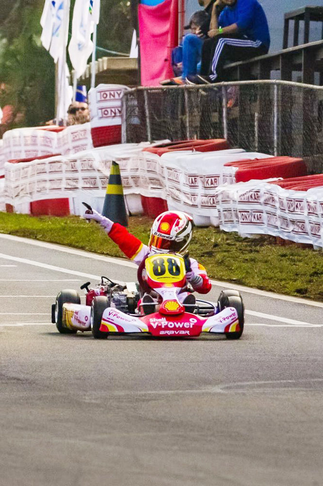 Bernardo Gentil, da categoria Mirim, é conhecido por sua técnica e carisma e iniciou sua carreira no ano passado, na equipe Prokart, de BrasÁlia (DF), tendo como coach Diogo Broka. Em um inÁcio promissor, Gentil protagonizou as melhores corridas de 2017 com Gabriel Koenigkan e Heitor Dall’Agnol. Em 2018, integrando a Academia Shell de Pilotos, ele foi o principal destaque da categoria Mirim no Open e no Brasileiro.