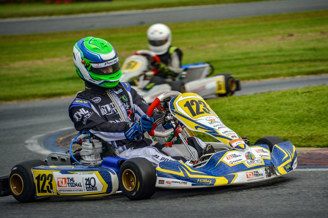 João LuÁs Pocay, sempre atendido pela equipe Elohim Kart, comandada pelo preparador VinÁcius Marcelino, fez bons treinos no primeiro dia de atividades, quando a Graduados foi Á pista agrupada com a categoria Júnior. No sábado (11), ele foi o 7º colocado em uma tomada de tempos conturbada, já que foi possÁvel percorrer apenas duas voltas em função de uma chuva repentina que caiu sobre a pista.