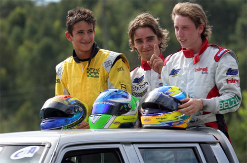 “Estou muito feliz. Desde a prova de Floripa que tÁnhamos equipamento para vencer e, infelizmente tivemos nosso motor travado naquela ocasião. Nesta prova, entretanto, conseguimos manter o equipamento muito rápido e alcançamos as duas vitórias. Agora é dar inÁcio Á preparação para a terceira etapa, em Curitiba, que com certeza temos ainda grandes chances de sairmos com o tÁtuloâ€, finalizou o piloto de 18 anos.
