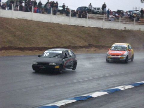 Se a tomada de tempos foi disputada em pista seca, a primeira bateria foi disputada completamente sob pista encharcada. Vitor Genz, partindo da pole position dominou a prova, sempre sendo pressionado por “Choka†Sirtuli. O terceiro posto foi dominado por Gustavo Frey (Corsa 2 – Balas Berbau) que permaneceu isolado durante praticamente toda a bateria. Já do quarto posto em diante foi impossÁvel determinar quem poderia levar a vantagem final. Vinicius Ferlauto (Celta 100 – Chevrolet) acabou levando vantagem sobre Alex Schons (Uno 5 – Dotto VeÁculos), Luciano Cardoso (Gol 21 – Colégio Kennedy) em uma brilhante exibição; e Rafael Mocelin (Fiat Uno 143 – Sergio Joalheria/ Kaki). Um segundo pelotão se formou, sendo composto pelos pilotos Nelson Cardoso (Corsa 1), Urbano da Silva (Corsa 54 – Sergio Paris/ Postos Perdigão), Eduardo Fuentes (Corsa 88 – Dudu VeÁculos) e Robson Walther (Gol 26 – Reifrio). Urbano da Silva acabou penalizado por se envolver em um toque com Eduardo Fuentes. Entre a classe Novatos, Rafael Biancini (Celta 43 – Hotel Vergueiro) provou que continua em uma ótima fase vencendo a bateria. Frank Anderson (Celta 110 – Hiper Pan/ Summer Ice) estreando um novo Chevrolet Celta pressionou no final de prova Biancini, mas nao conseguiu superá-lo. Isadora Diehl (Corsa 7 – Escola Gaúcha de Pilotos) bateu no contorno da Curva 8, após se enroscar com outro competidor. Isso provocou a entrada do Safety Car na pista, ficando a prova em regime de baixa velocidade até praticamente o fim. Com a relargada, não houve alterações significativas nas posições.
