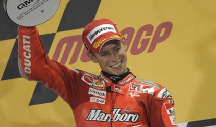 O australiano Casey Stoner, de Ducatti, venceu no domingo (09/03), o GP do Catar em Losail, etapa de abertura do Mundial de MotoGP. Foi a primeira prova disputada a noite na história da categoria. Os espanhóis, Jorge Lorenzo, da Yamaha e Daniel Pedrosa, da Honda, completaram o pódio.