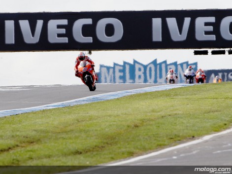 O australiano Casey Stoner (Ducati) venceu neste domingo (17/10), o GP da Austrália, em Phillip Island, 16ª etapa da temporada. Foi a quarta vitória consecutiva de Stoner em casa. O campeão antecipado, o espanhol Jorge Lorenzo (Yamaha) foi o 2º, seguido pelo parceiro de equipe, o italiano Valentino Rossi.