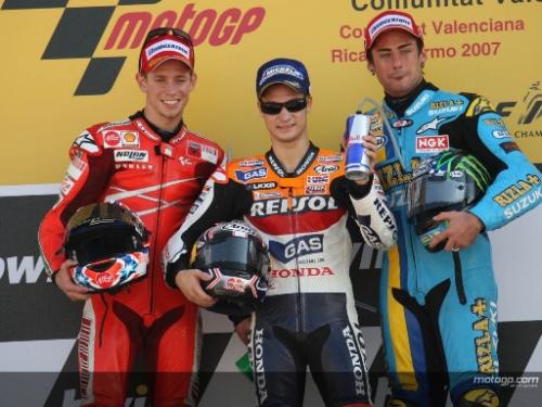 O espanhol Daniel Pedrosa, da Honda, venceu neste domingo (04/11), o GP da Comunidade Valencia, em Valência, na Espanha, última etapa da temporada. Com a vitória Pedrosa ficou com o vice-campeonato. O campeão da temporada, o australiano Casey Stoner, da Ducati, foi o 2º, com o australiano John Hopkins, da Suzuki, fechando o pódio.