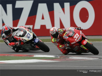 Melandri largou em 14º e conquistou a vitória com uma ultrapassagem sobre Hayden na última volta, faltando duas curvas para a bandeirada de chegada. Hayden assumiu a liderança do campeonato com apenas um ponto de vantagem sobre Loris Capirossi, da Ducati, sexto hoje e antigo lÁder na tabela. Valentino Rossi, da Yamaha, chegou em 4º.