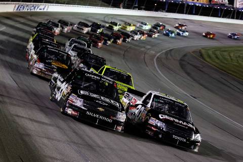 Após uma relargada, na 80ª volta, Bodine e Busch duelavam lado a lado pela liderança, quando os dois se tocaram na curva três, com Bodine rodando. O lÁder do campeonato teve que fazer algumas paradas extras nos boxes para a equipe reparar a sua camionete, relargando em 25º.