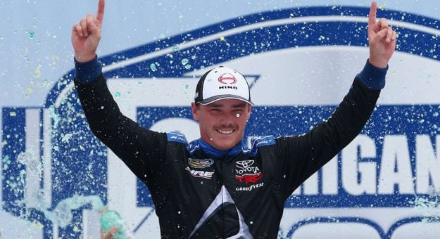 Brett Moffitt (Toyota) venceu neste sábado (11/08) a Corrigan Oil 200, no Michigan International Speedway, 15ª etapa da Michigan International Speedway. Foi a quarta vitória do piloto da Hattori Racing Enterprises no ano e quinta na categoria. Johnny Sauter (Chevrolet) terminou em segundo, seguido por John Hunter Nemechek (Chevrolet).