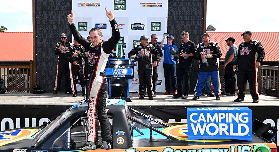 Parker Kligerman (Henderson Motorsports/Chevrolet) venceu a O’Reilly Auto Parts at Mid-Ohio, no Mid-Ohio Sports Car Course, 15ª etapa da NASCAR Camping World Truck Series. Foi a sua primeira vitória no ano, e terceira na categoria. Zane Smith (Front Row Motorsorts/Ford) e Carson Hocevar (Niece Motorsports/Chevrolet) completaram os três primeiros.