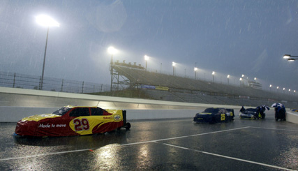A chuva adiou que caiu esta noite (12/05), no Darlington Raceway fez a direção da Nascar adiar a Dodge Avenger 500, 11º etapa da temporada. Aprova foi remarcada para amanhã, Dia das Mães.