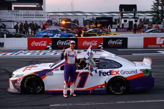 Denny Hamlin (Joe Gibbs Racing Toyota) venceu neste domingo (28/06) a Pocono 350, no Pocono Raceway, 15ª etapa da NASCAR Cup Series. Foi a quarta vitória de Hamlin no ano, e 41ª na categoria. Kevin Harvick (Stewart-Haas Racing Ford) terminou em segundo, seguido por Erik Jones (Joe Gibbs Racing Toyota).