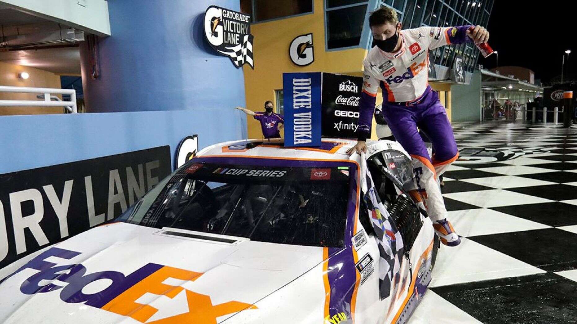 Denny Hamlin (Joe Gibbs Racing Toyota) venceu no domingo (14/06) a Dixie Vodka 400, no Miami-Homestead Speedway, 12ª etapa da NASCAR Cup Series. Foi a terceira vitória de Hamlin no ano, e 40ª na categoria. Chase Elliott (Hendrick Motorsports Chevrolet) e Ryan Blaney (Team Penske Ford) completaram os três primeiros.