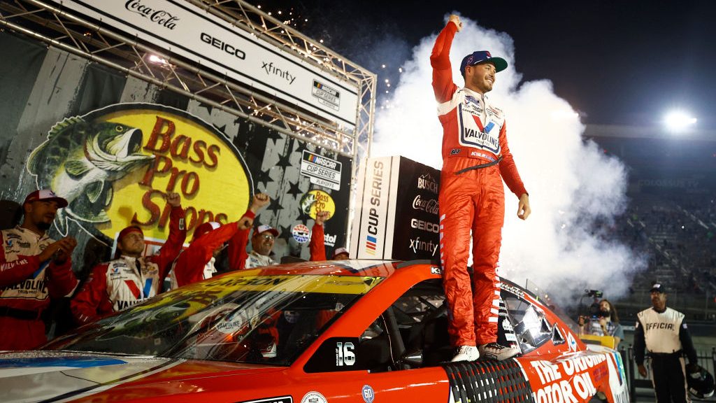 Kyle Larson (Hendrick Motorsports/Chevrolet) venceu a Bass Pro Shops NRA Night Race, no Bristol Motor Speedway, 29ª etapa da NASCAR Cup Series. Foi a sexta vitória de Larson no ano, e 12ª na categoria. Kevin Harvick (Stewart-Haas Racing/Ford) e William Byron (Hendrick Motorsports/Chevrolet) completaram os três primeiros.