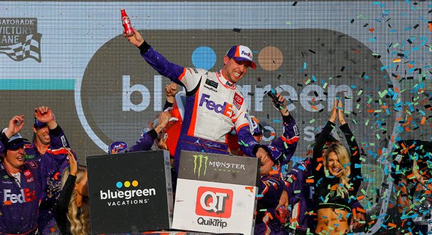 Denny Hamlin (Joe Gibbs Racing Toyota) venceu neste domingo (10/11) a Bluegreen Vacations 500 no ISM Raceway, em Phoenix, no Arizona, penúltima etapa da Monster Energy NASCAR Cup Series, nona dos Playoffs e terceira do Round of 8. Foi a sexta vitória de Hamlin no ano, e 27ª na categoria. Kyle Busch completou a dobradinha da JJGR. Ryan Blaney (Team Penske Ford) terminou em terceiro.