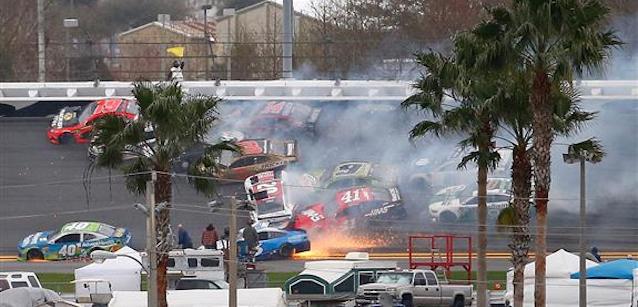 Na 56ª volta Johnson disputava a liderança com Paul Menard quando tocou em Menard na curva três. O piloto da Wood Brothers rodou, iniciando uma “Big Oneâ€, que danificou 17, dos 20 carros na prova.