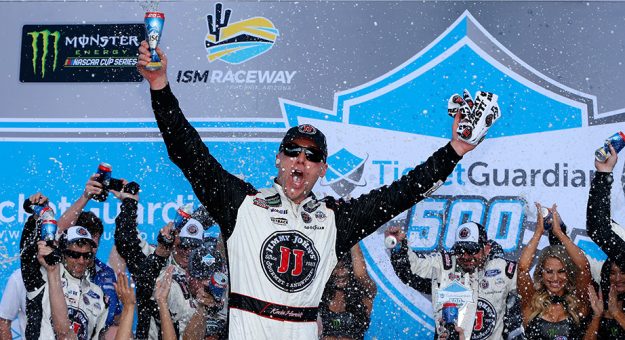 Kevin Harvick (Ford) venceu neste domingo (11/03) a TicketGuardian 500, no ISM Raceway, em Phoenix, no Arizona, quarta etapa da Monster Energy NASCAR Cup Series. Foi a terceira vitória consecutiva do piloto da Stewart-Haas Racing e 40ª na categoria. Kyle Busch (Toyota) terminou em segundo, seguido por Chase Elliot (Chevrolet).