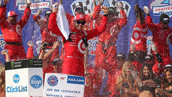 Larson venceu com 0s779 de vantagem sobre Keselowski. O piloto da Penske fez uma prova de recuperação, após se envolver em um acidente logo na terceira volta com Jimmie Johnson (Chevrolet).