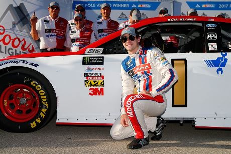 Joey Logano (Ford) completa a primeira fila. Martin Truex Jr. (Toyota) e Ricky Stenhouse Jr (Ford) formam a segunda fila.