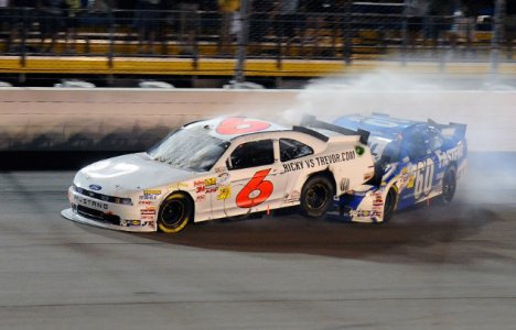 Na curva quatro da última volta, o motor de Stenhouse Jr estourou, derramando óleo pela pista. Edwards acabou escorregando, e sem praticamente ver nada, acertou com força a traseira do Ford do parceiro de equipe. Stenhouse Jr. admitiu que olhou Edwards vindo em velocidade, e então bloqueou o parceiro.Â