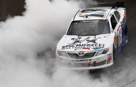 Na relargada, para mais duas voltas em bandeira verde, Logano segurou seu parceiro na Joe Gibbs Racing, Vickers, para vencer pela 18ª vez na categoria.