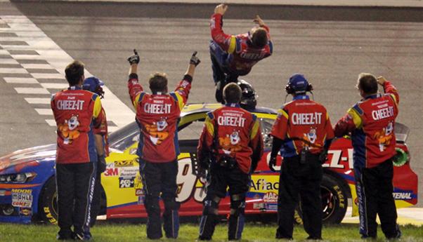 Duas voltas depois, Clint Bowyer, parceiro de Truex Jr. na MWR, rodou, provocando a última bandeira amarela da prova, e mudando a sorte de Newman, Truex.Jr, Gordon e Logano.