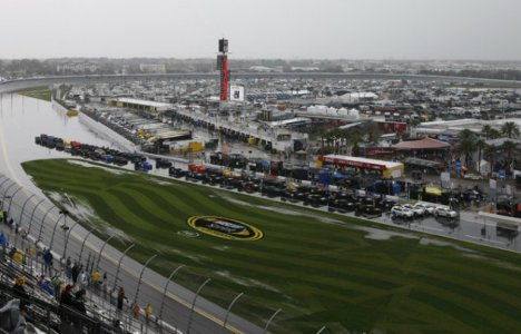 A forte chuva que atingiu a região do Daytona International Speedway neste domingo (26/02), adiou para segunda-feira (27/02), a Daytona 500, prova de abertura da NASCAR Sprint Cup Series.