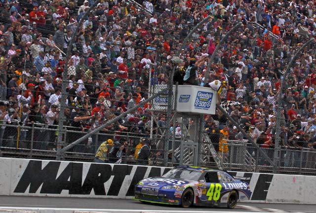 Jimmie Johnson, de Chevrolet, venceu no domingo (29/03), a Goody’s Fast Pain Relief 500, no Martinsville Speedway, 6ª etapa da Nascar Sprint Cup Series. Foi a quinta vitória de Johnson nas seis últimas provas disputadas em Martinsville. Denny Hamlin, de Toyota, terminou em 2º, seguido por Tony Stewart, de Chevrolet.