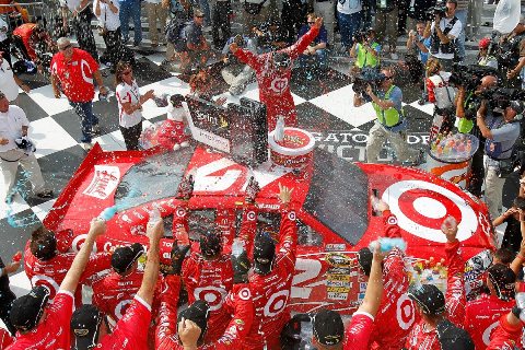 A. J. Allmendinger (Ford) foi o 4º, seguido pelo pole-position Carl Edwards (Ford) e Jamie McMurray (Chevrolet).