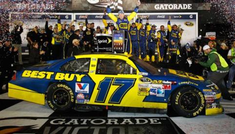 Na gree-white-chequered-flag, na 201ª volta, Kenseth manteve a ponta, para vencer a prova pela segunda vez. Foi a 300ª vitória da Roush Fenway Racing na NASCAR.