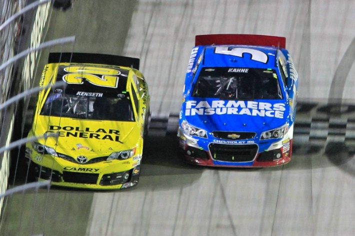 Kenseth (com pneus mais velhos e economizando combustÁvel) e Kahne (com tanque cheio e pneus novos) fizeram um intenso duelo lado a lado nas voltas finais, com os dois cruzando a linha de chegada, separados por apenas 0s188. Foi a terceira vez no ano que Kenseth vence, com Kahne em segundo.